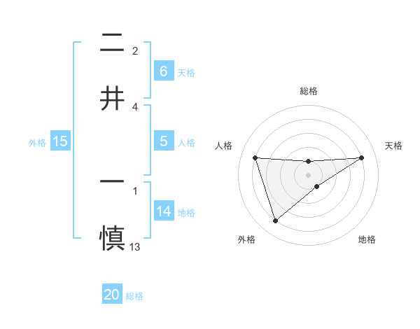 二井 一慎さんの総格は20画の1点!