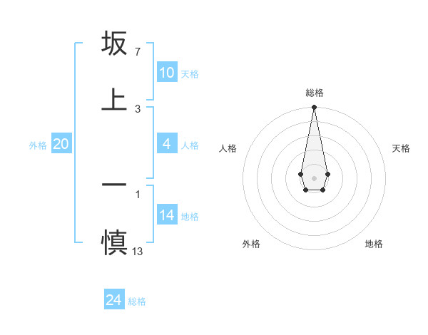 坂上 一慎さんの総格は24画の5点!