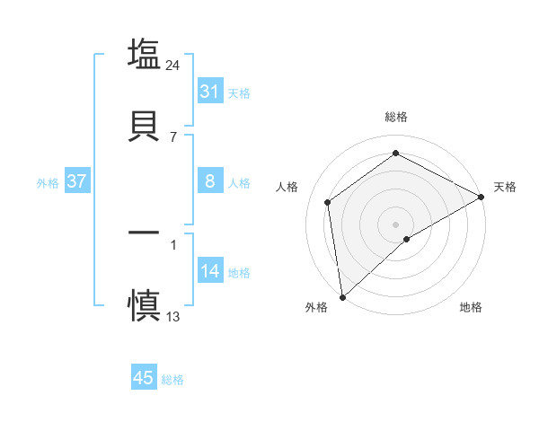 塩貝 一慎さんを姓名の画数から五運を鑑定