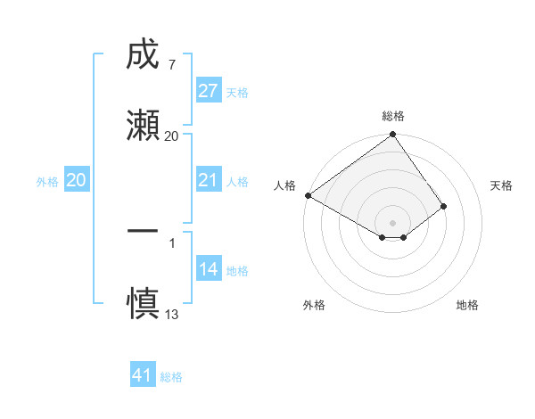 成瀬 一慎さんの総格は41画の5点!