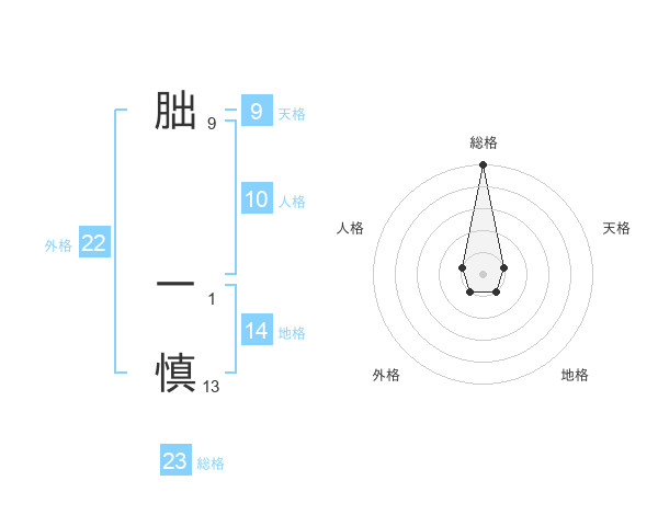 朏 一慎さんの総格は23画の5点!