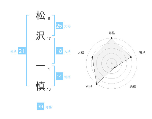 松沢 一慎さんの総格は39画の5点!