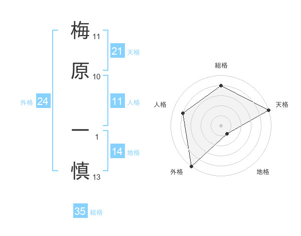梅原 一慎さんの総格は35画の4点!