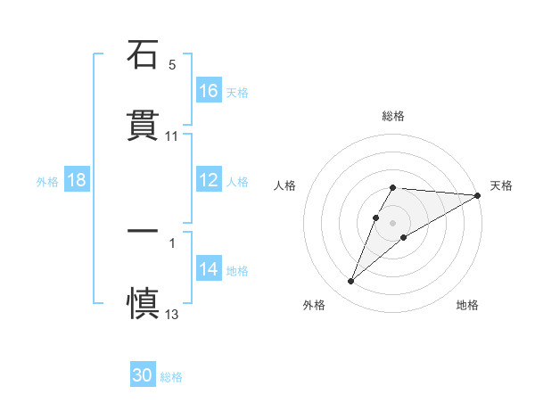 石貫 一慎さんを姓名の画数から五運を鑑定