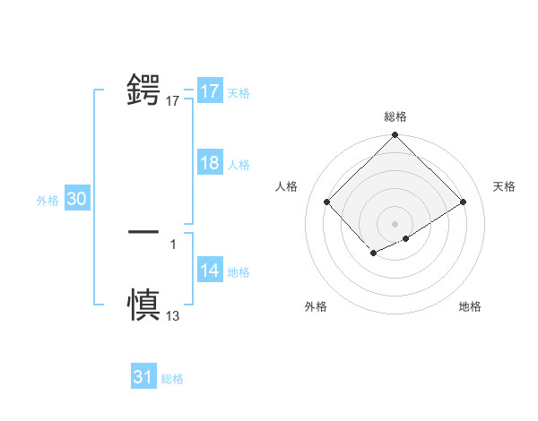 鍔 一慎さんの天格は17画の4点!