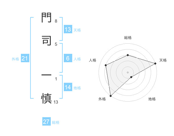 門司 一慎さんの外格は21画の5点!