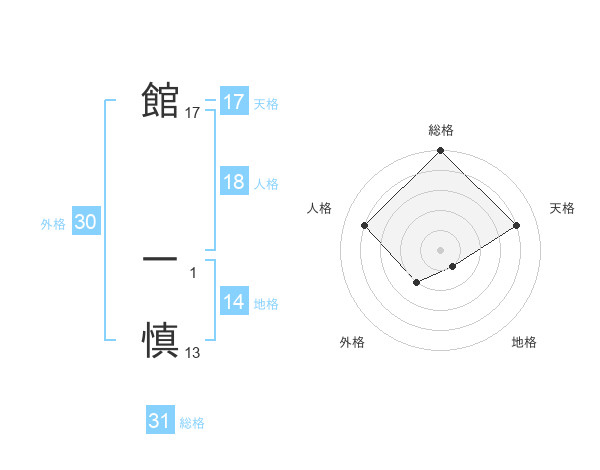 館 一慎さんの総格は31画の5点!
