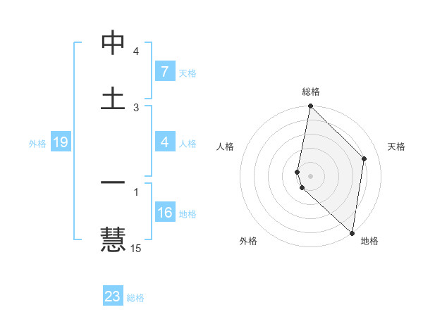 中土 一慧さんの総格は23画の5点!