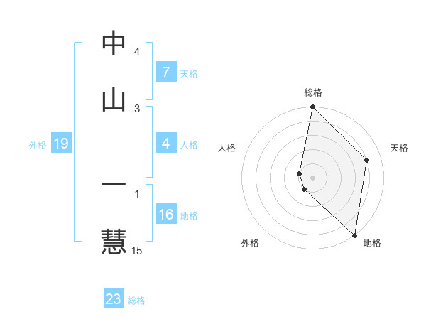 中山 一慧さんの総格は23画の5点!