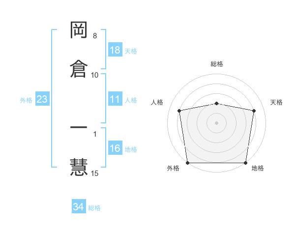 岡倉 一慧さんを姓名の画数から五運を鑑定