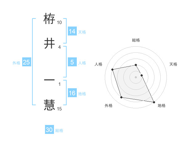 栫井 一慧さんを姓名の画数から五運を鑑定
