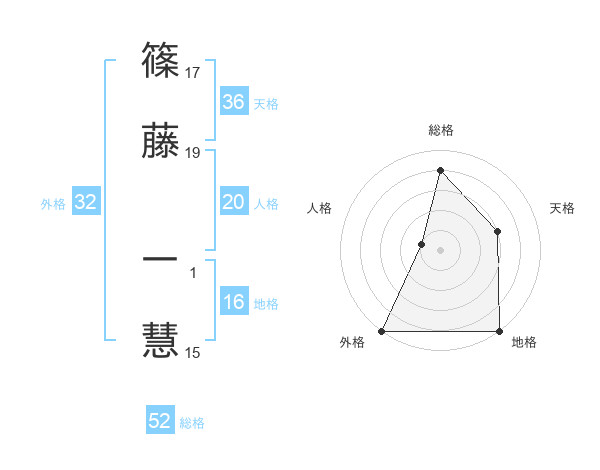 篠藤 一慧さんの総格は52画の4点!