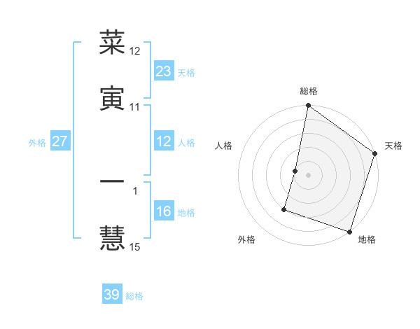 菜寅 一慧さんを姓名の画数から五運を鑑定