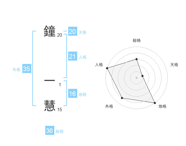鐘 一慧さんの天格は20画の1点!