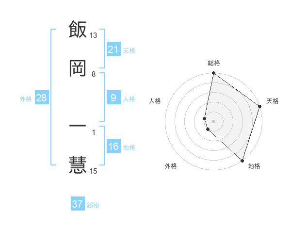 飯岡 一慧さんを姓名の画数から五運を鑑定