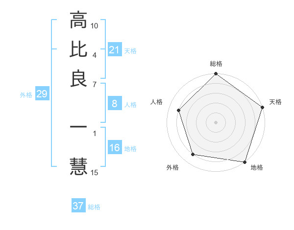 高比良 一慧さんの天格は21画の5点!