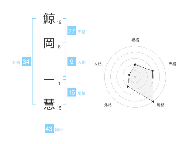 鯨岡 一慧さんを姓名の画数から五運を鑑定