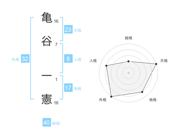 亀谷 一憲さんの天格は23画の5点!