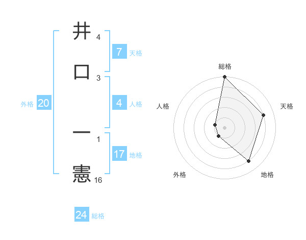 井口 一憲さんの地格は17画の4点!