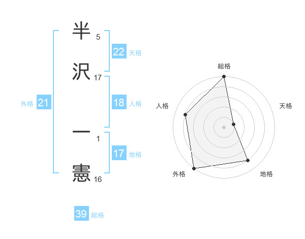半沢 一憲さんを姓名の画数から五運を鑑定