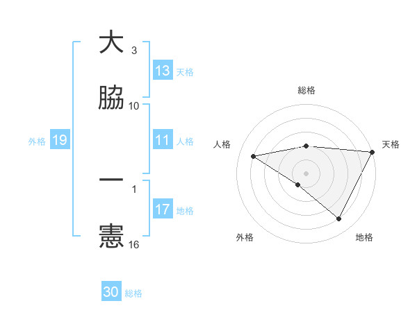 大脇 一憲さんを姓名の画数から五運を鑑定