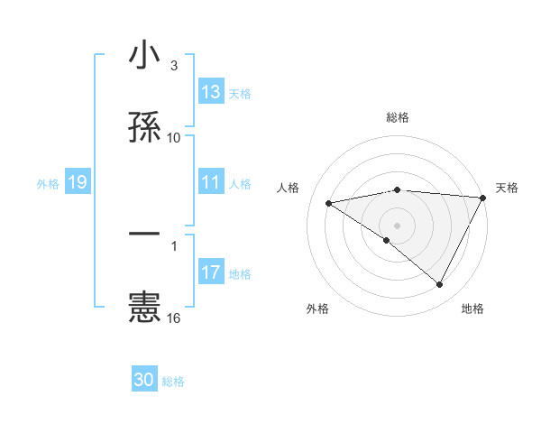 小孫 一憲さんの天格は13画の5点!