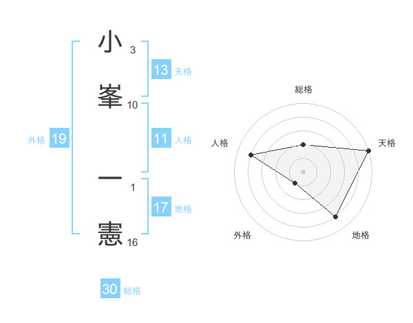 小峯 一憲さんの天格は13画の5点!