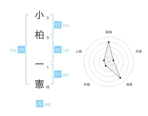 小柏 一憲さんの総格は29画の4点!