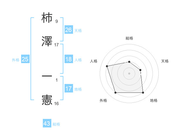 柿澤 一憲さんの地格は17画の4点!