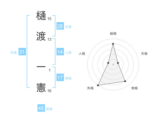 樋渡 一憲さんを姓名の画数から五運を鑑定
