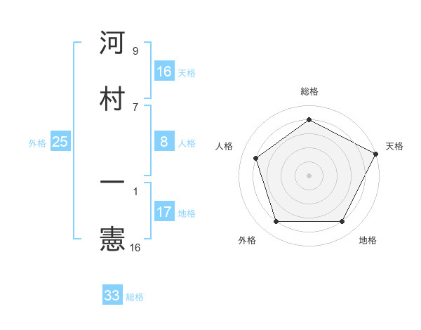 河村 一憲さんの総格は33画の4点!