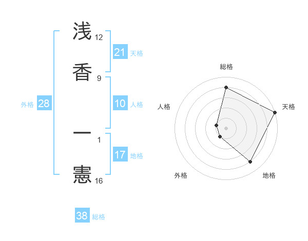 浅香 一憲さんの総格は38画の4点!