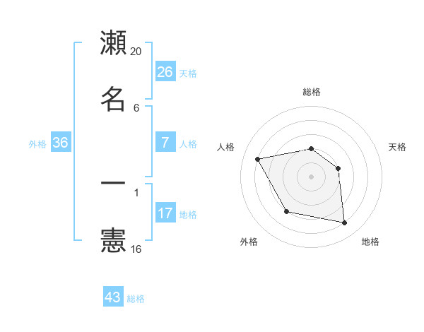 瀬名 一憲さんを姓名の画数から五運を鑑定