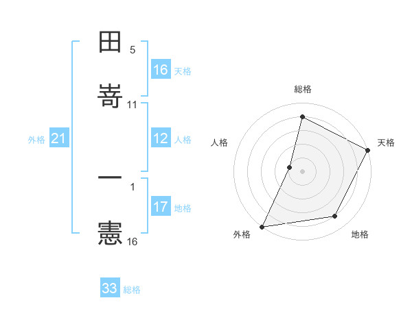 田嵜 一憲さんの天格は16画の5点!