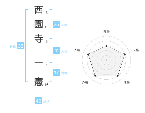 西園寺 一憲さんの総格は42画の3点!