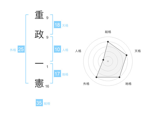 重政 一憲さんの総格は35画の4点!