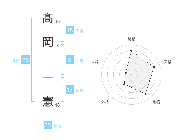 髙岡 一憲さんの総格は35画の4点!