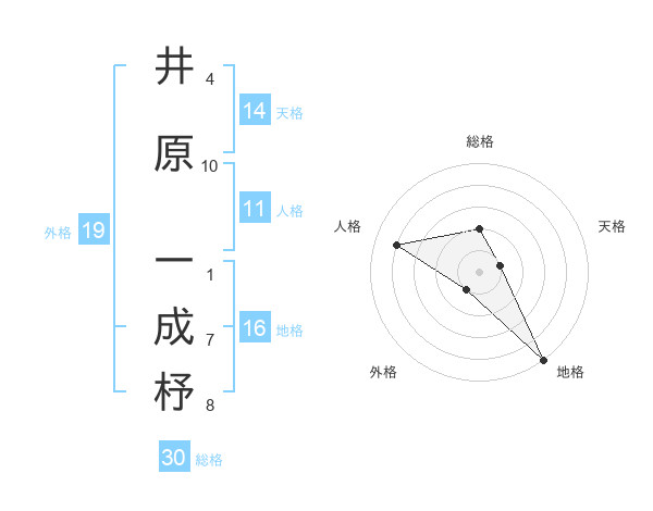 井原 一成杼さんを姓名の画数から五運を鑑定