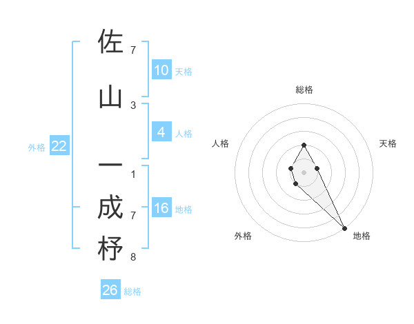 佐山 一成杼さんを姓名の画数から五運を鑑定
