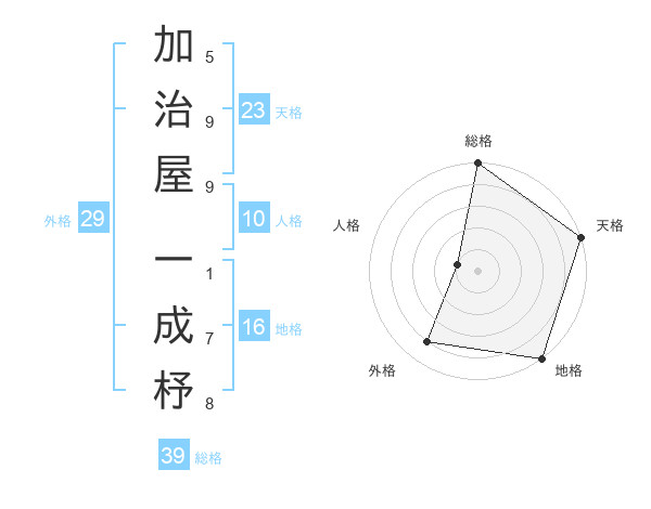 加治屋 一成杼さんを姓名の画数から五運を鑑定