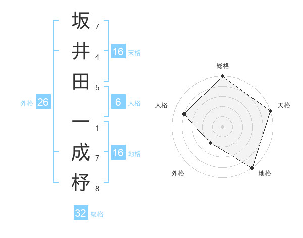 坂井田 一成杼さんを姓名の画数から五運を鑑定