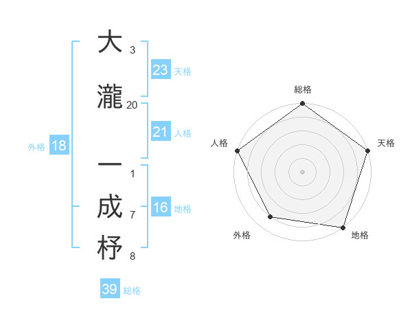 大瀧 一成杼さんの天格は23画の5点!