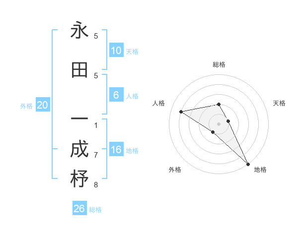 永田 一成杼さんを姓名の画数から五運を鑑定