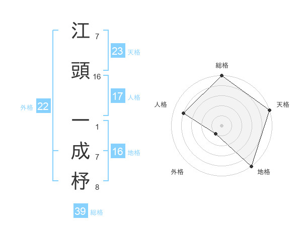 江頭 一成杼さんを姓名の画数から五運を鑑定