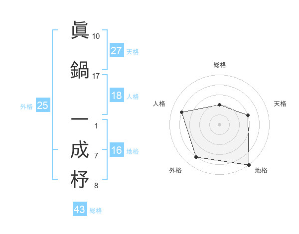 眞鍋 一成杼さんの天格は27画の3点!