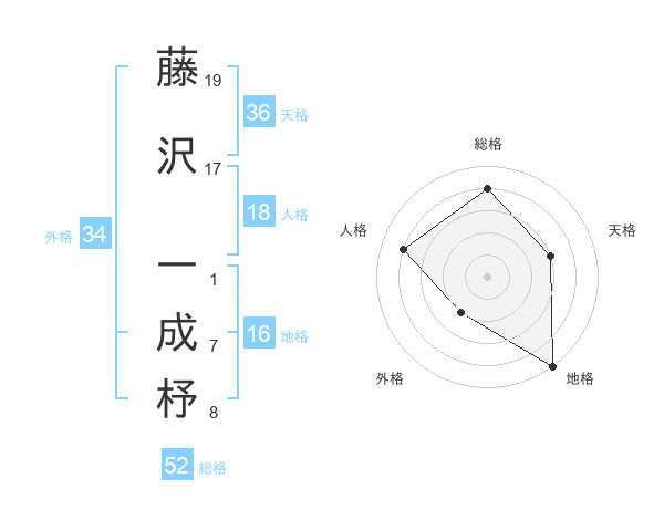 藤沢 一成杼さんの総格は52画の4点!