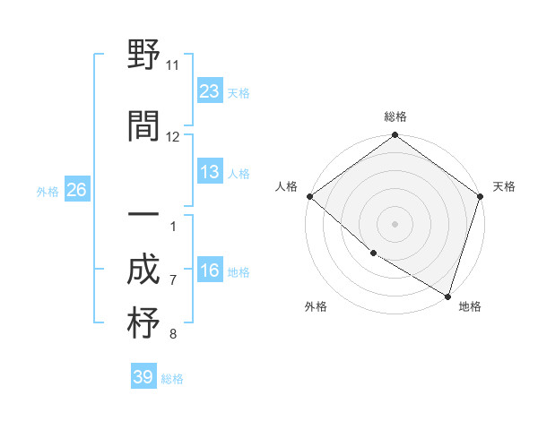 野間 一成杼さんを姓名の画数から五運を鑑定