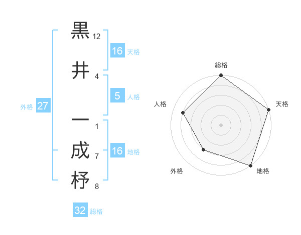 黒井 一成杼さんの天格は16画の5点!