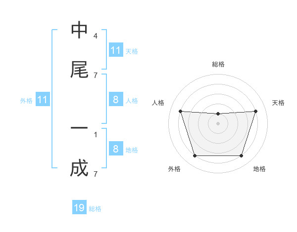中尾 一成さんの天格は11画の4点!