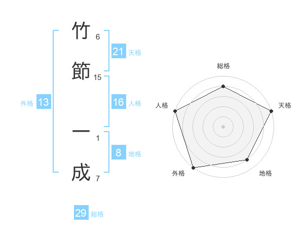 竹節 一成さんの総格は29画の4点!